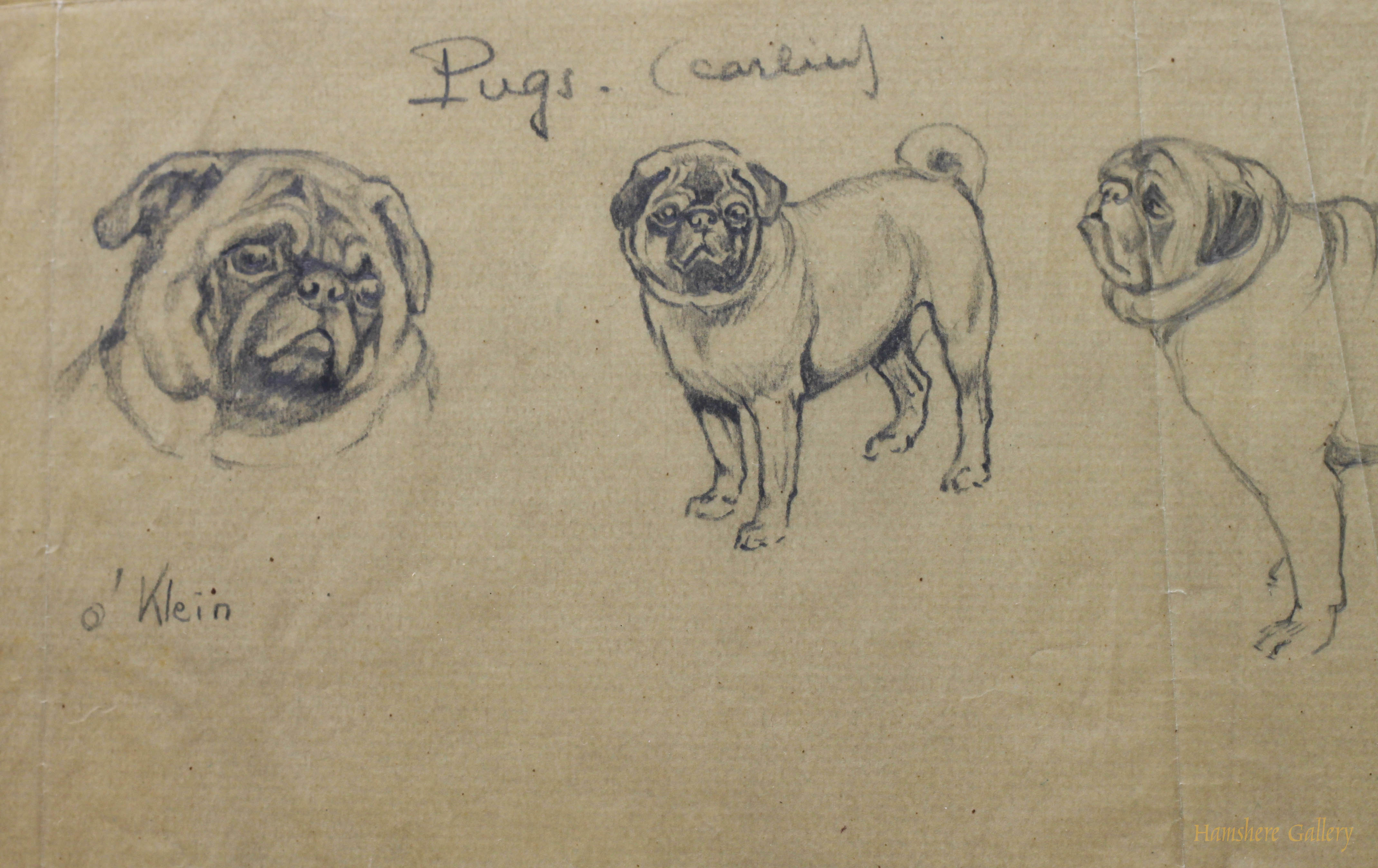 Pug / Carlin / Mops pencil studies by Borris O'Klein / Jean Herblet (French, 1893-1985) Pencil studies of the Pug / Carlin / Mops by Borris O'Klein / Jean Herblet (French, 1893-1985). Titled in pencil "Pugs. (carlin)", signed "O'Klein", and monogrammed bottom right "O'K" (Borris O'Klein).