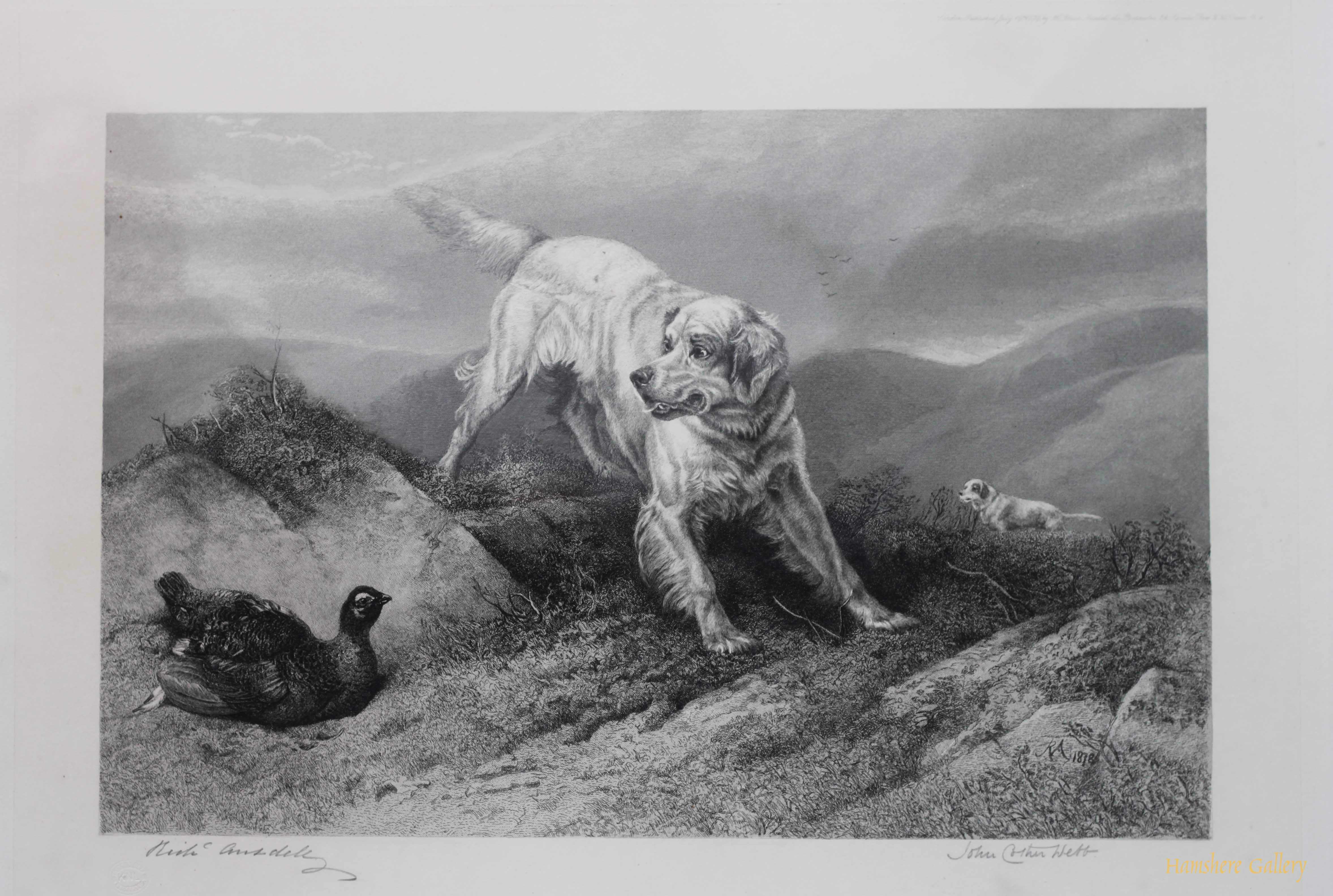 Artist’s proof engraving of English Setters and pheasant by John Cother Webb (English 1855-1927) after Richard Ansdell, R.A. (1815-1885)