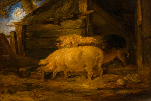 Oil on canvas of Pigs by James Ward R.A. (1769 - 1854). SOLD The sow behind possibly a Berkshire Pig.