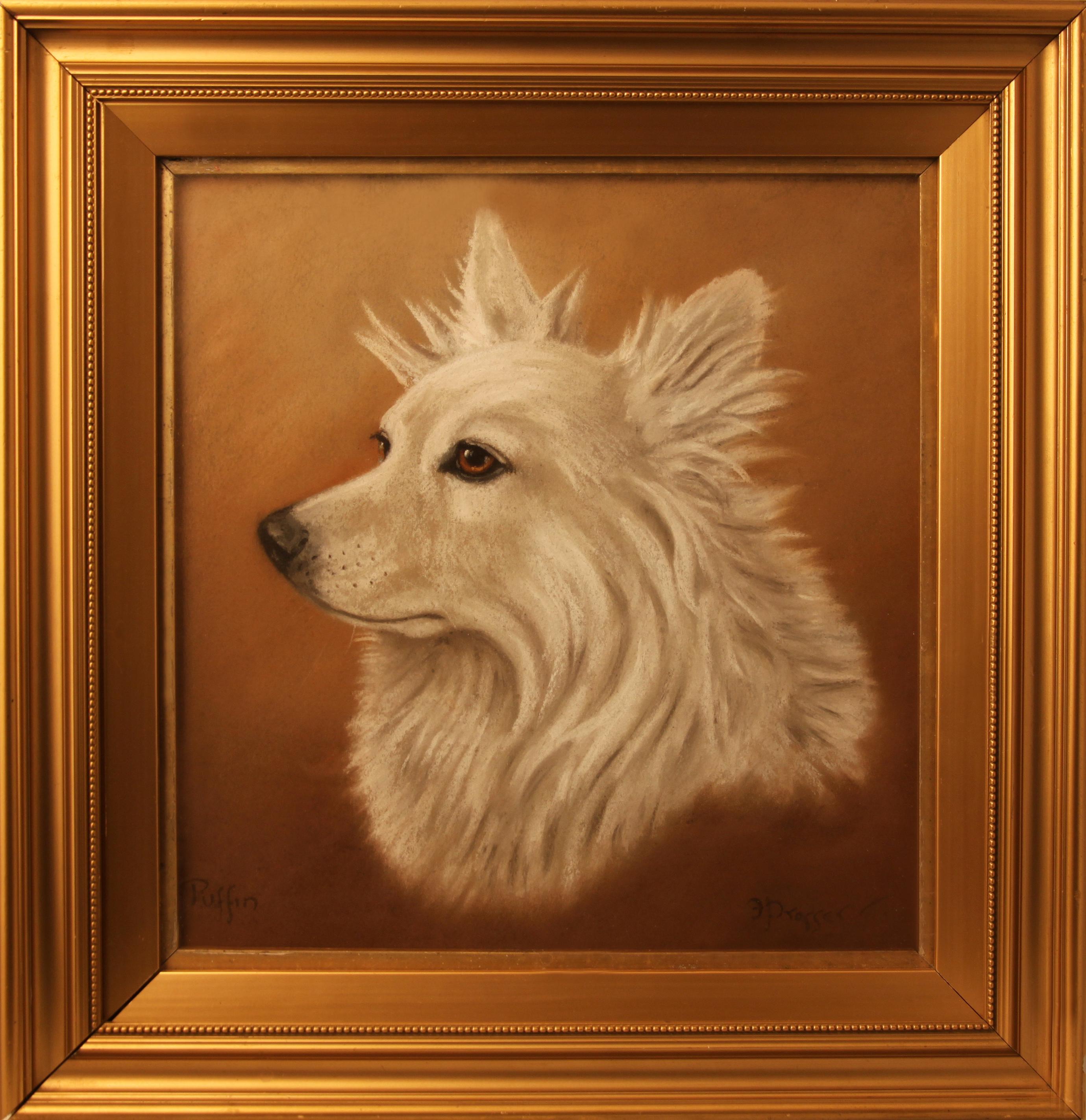 Pastel on paper of a Spitz titled "Puffin". Signed "F Prosser". English circa 1915.