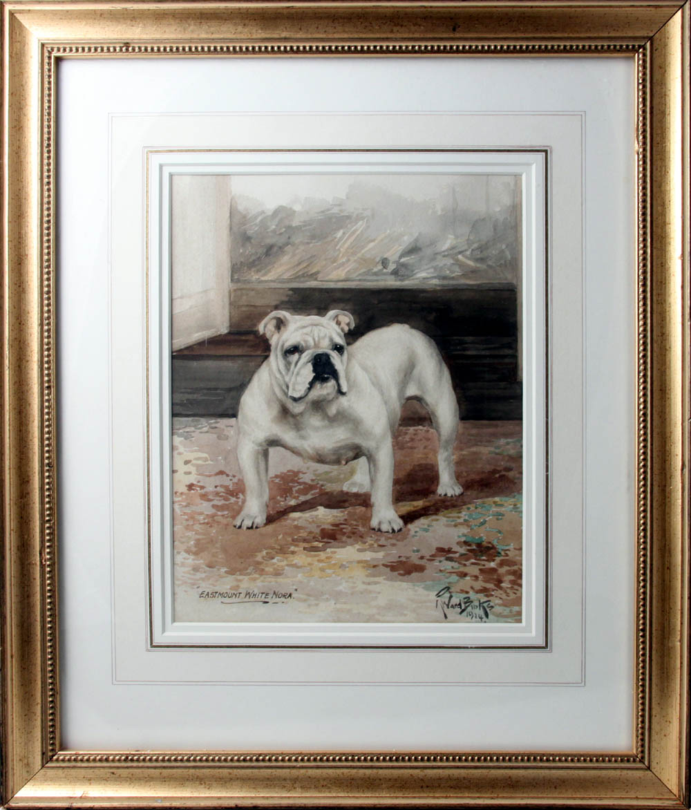 Bulldog "Eastmount White Nora" by Reuben Ward Binks (1880-1950) Bulldog "Eastmount White Nora" by Reuben Ward Binks (1880-1950). Signed and dated "R Ward Binks 1914".